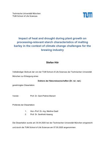 Impact of heat and drought during plant growth on processing-relevant starch characteristics of malting barley in the context of climate change challenges for the brewing industry