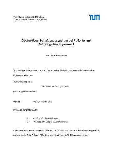 Obstruktives Schlafapnoesyndrom bei Patienten mit Mild Cognitive Impairment