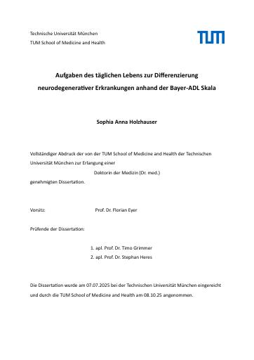 Aufgaben des täglichen Lebens zur Differenzierung neurodegenerativer Erkrankungen anhand der Bayer-ADL Skala