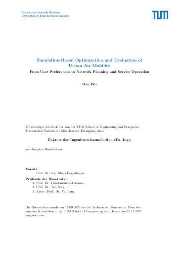 Simulation-Based Optimization and Evaluation of Urban Air Mobility