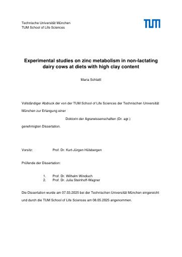 Experimental studies on zinc metabolism in non-lactating dairy cows at diets with high clay content