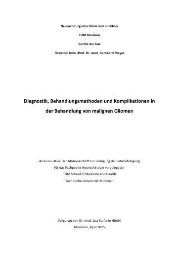 Diagnostik, Behandlungsmethoden und Komplikationen in der Behandlung von malignen Gliomen