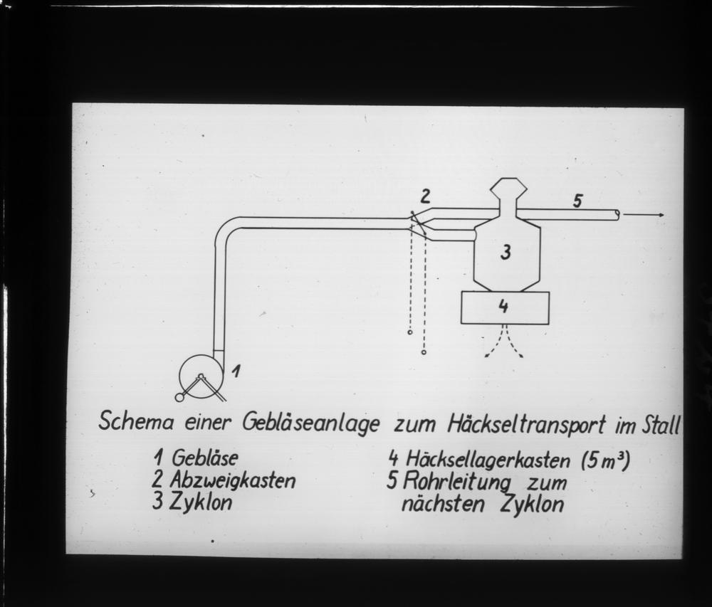 Schema einer Gebläseanlage zum Häckseltransport im Stall