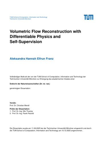 Volumetric Flow Reconstruction with Differentiable Physics and Self-Supervision
