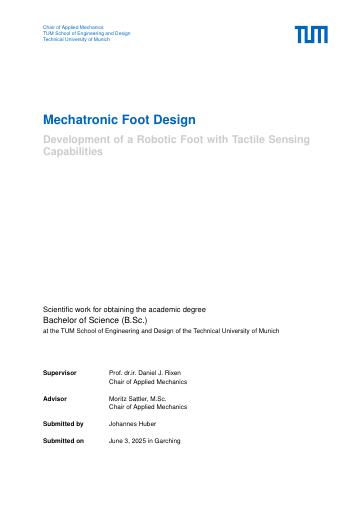 Mechatronic Foot Design: Development of a Robotic Foot with Tactile Sensing Capabilities