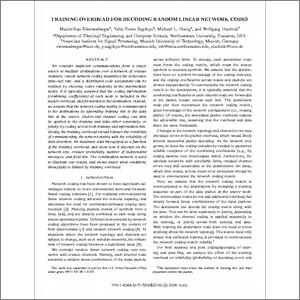 We consider multicast communications from a single source to multiple destinations over a network of erasure channels. Linear network coding maximizes the achievable (min-cut) rate, and a distributed code assignment can be realized by choosing codes randomly at the intermediate nodes. It is typically assumed that the coding information (combining coefficients) at each node is included in the packet overhead, and forwarded to the destination. Instead, we assume that the network coding matrix is communicated to the destinations by appending training bits to the data bits at the source. End-to-end channel coding can then be applied to the training and data either separately, or jointly, by coding across both training and information bits. Ideally, the training overhead should balance the reliability of communicating the network matrix with the reliability of data detection. We maximize data throughput as a function of the training overhead, and show how it depends on the network size, erasure probability, number of independent messages, and field size. The combination network is used to illustrate our results, and shows under what conditions throughput is limited by training overhead.