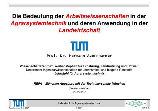 Die Bedeutung der Arbeitswissenschaften in der Agrarsystemtechnik und deren Anwendung in der Landwirtschaft