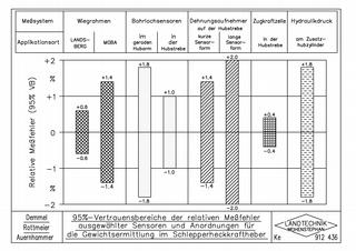 - 95%-Vertrauensbereiche der relativen Messfehler ausgewählter Sensoren und Anordnungen für die Gewichtsermittlung im Schlepperheckkraftheber