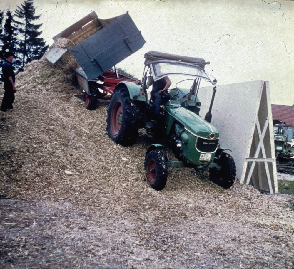 - Ein- und Auslagerungstechnik; Maissilage; Flachsilo; Fahrsilo; Zweiachsanhänger