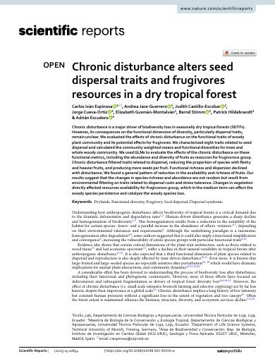 Chronic disturbance alters seed dispersal traits and frugivores resources in a dry tropical forest