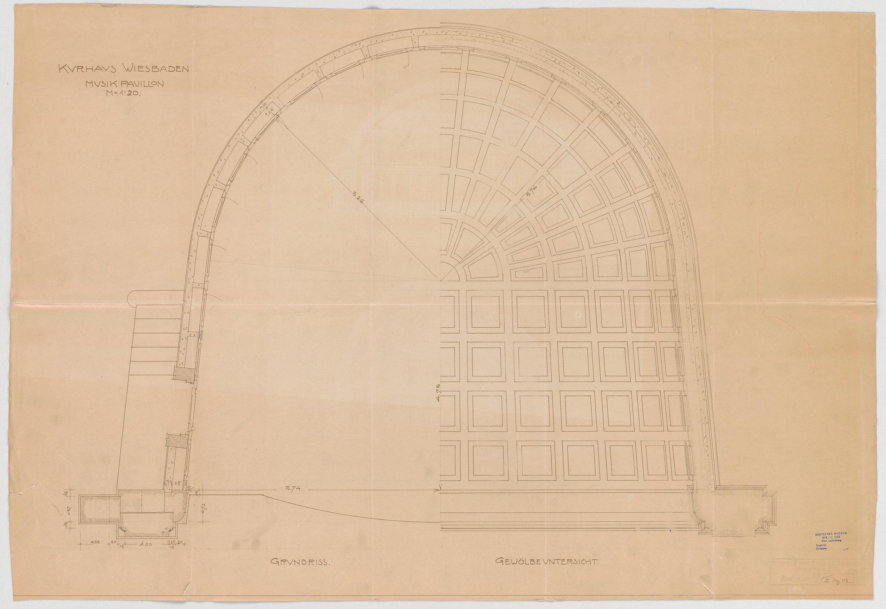 - Musikpavillon (Grundriss, Teilansicht, Schnitt)