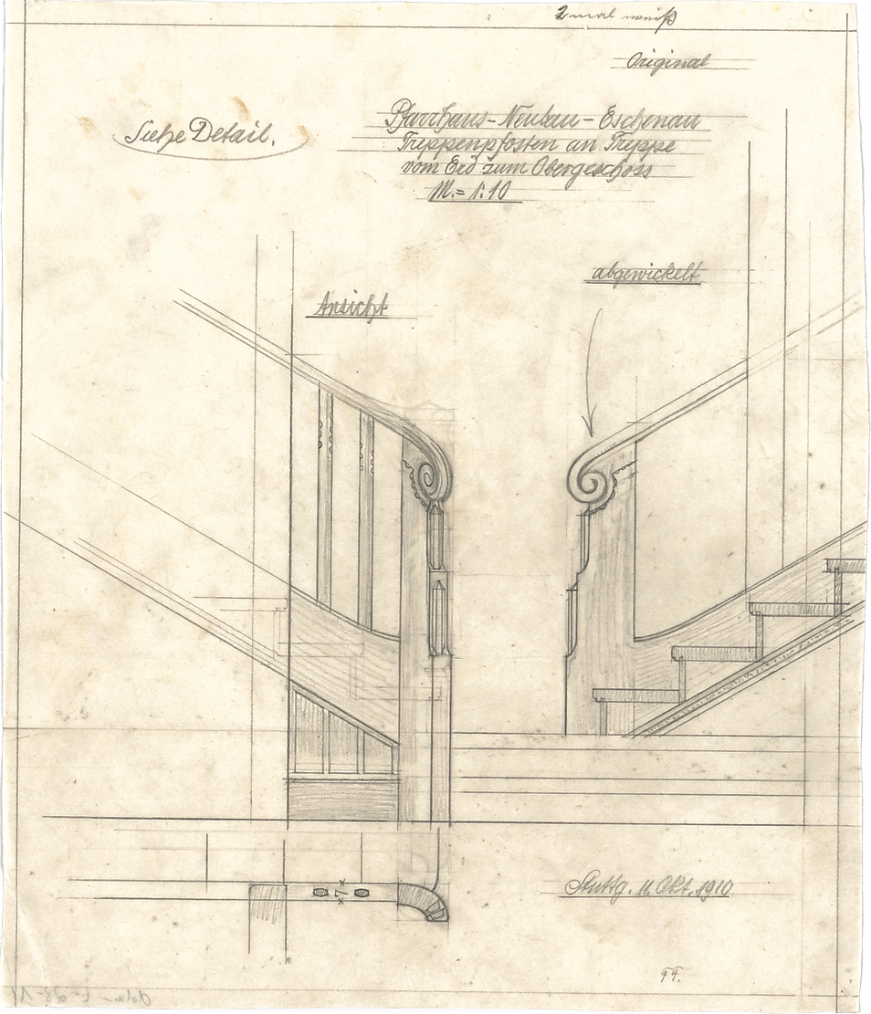 - Treppenpfosten von EG zum OG (Ansichten, Abwicklung)