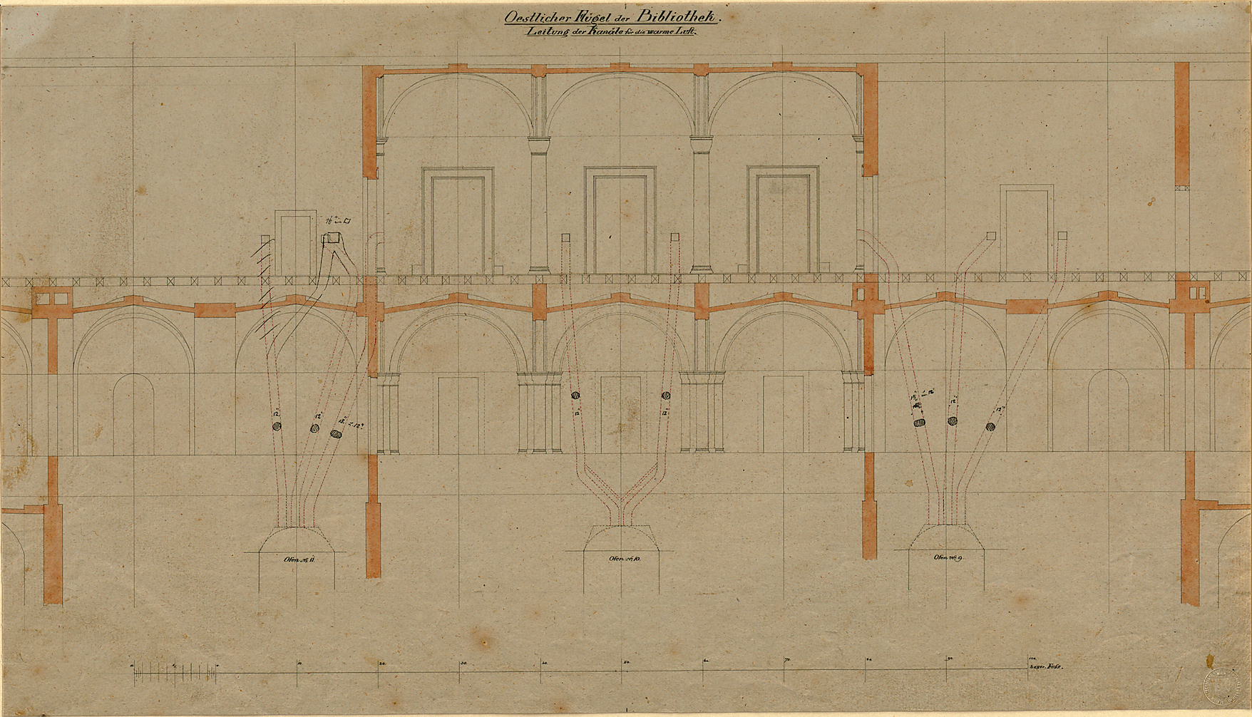 - Ostflügel - Leitung der Kanäle für Warmluft (Schnitt)