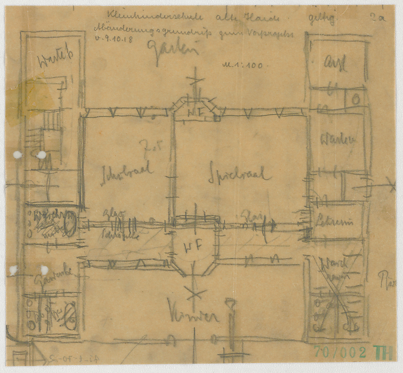 - "Abänderungsgrundriss-Skizze zum Vorprojekt v. 9.10.18."; oben rechts: Bl. 2a