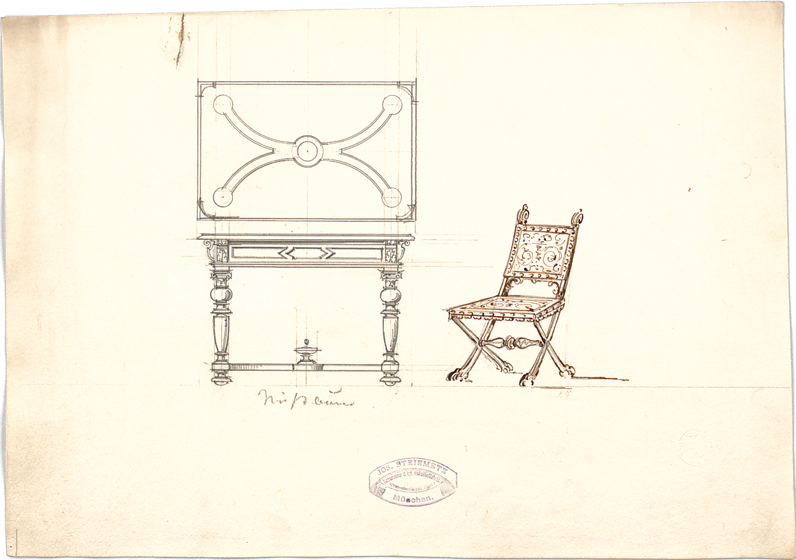 - Stempel mit Aufschrift: Jos. Steinmetz Dekorateur & kgl. Hofmöbelfabrkt. ...