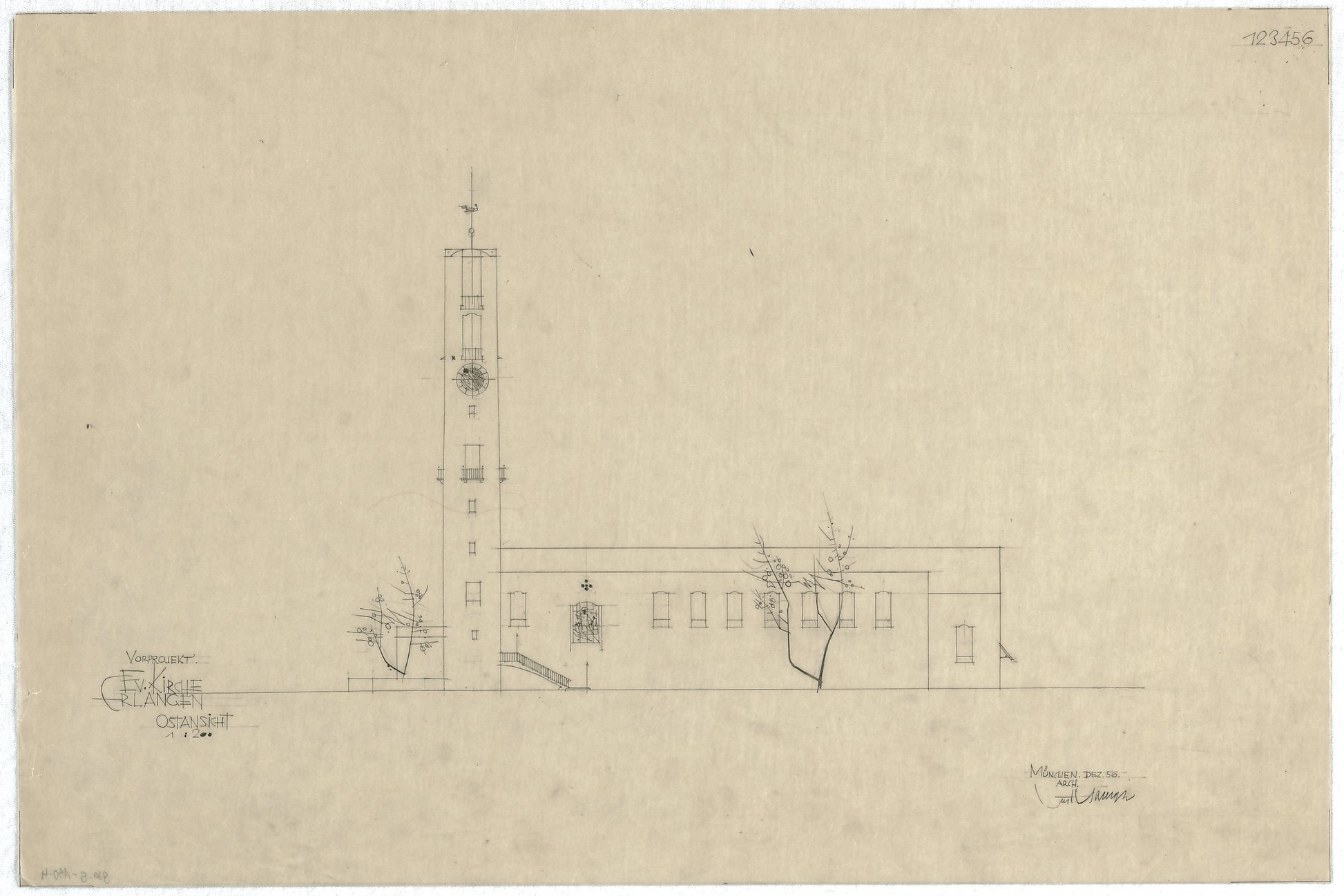- Wettbewerb und Vorprojekt, Ostseite (Ansicht)
