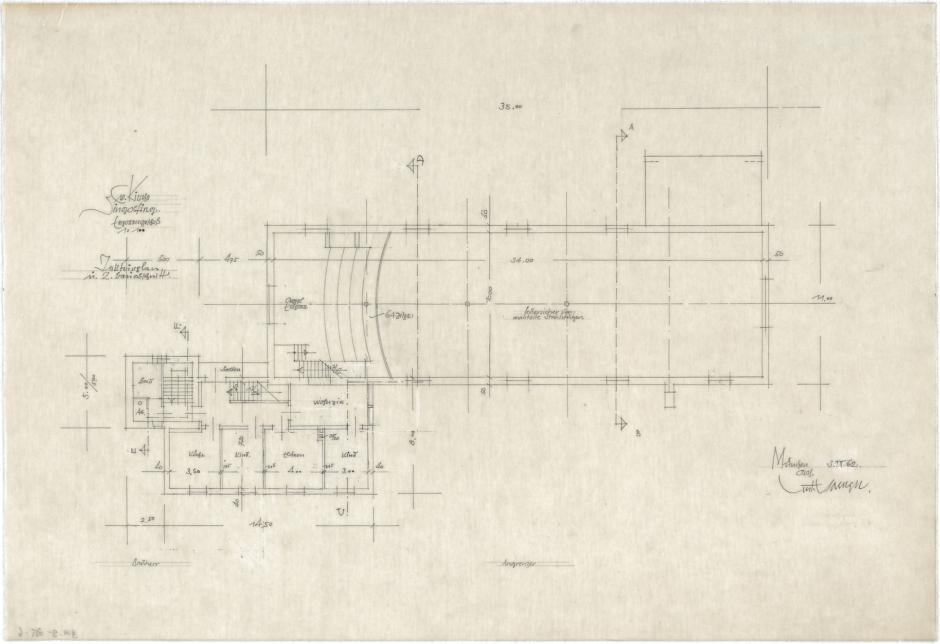 - Tekturplan u. 2. Bauabschnitt, Emporengeschoss (Grundriss)