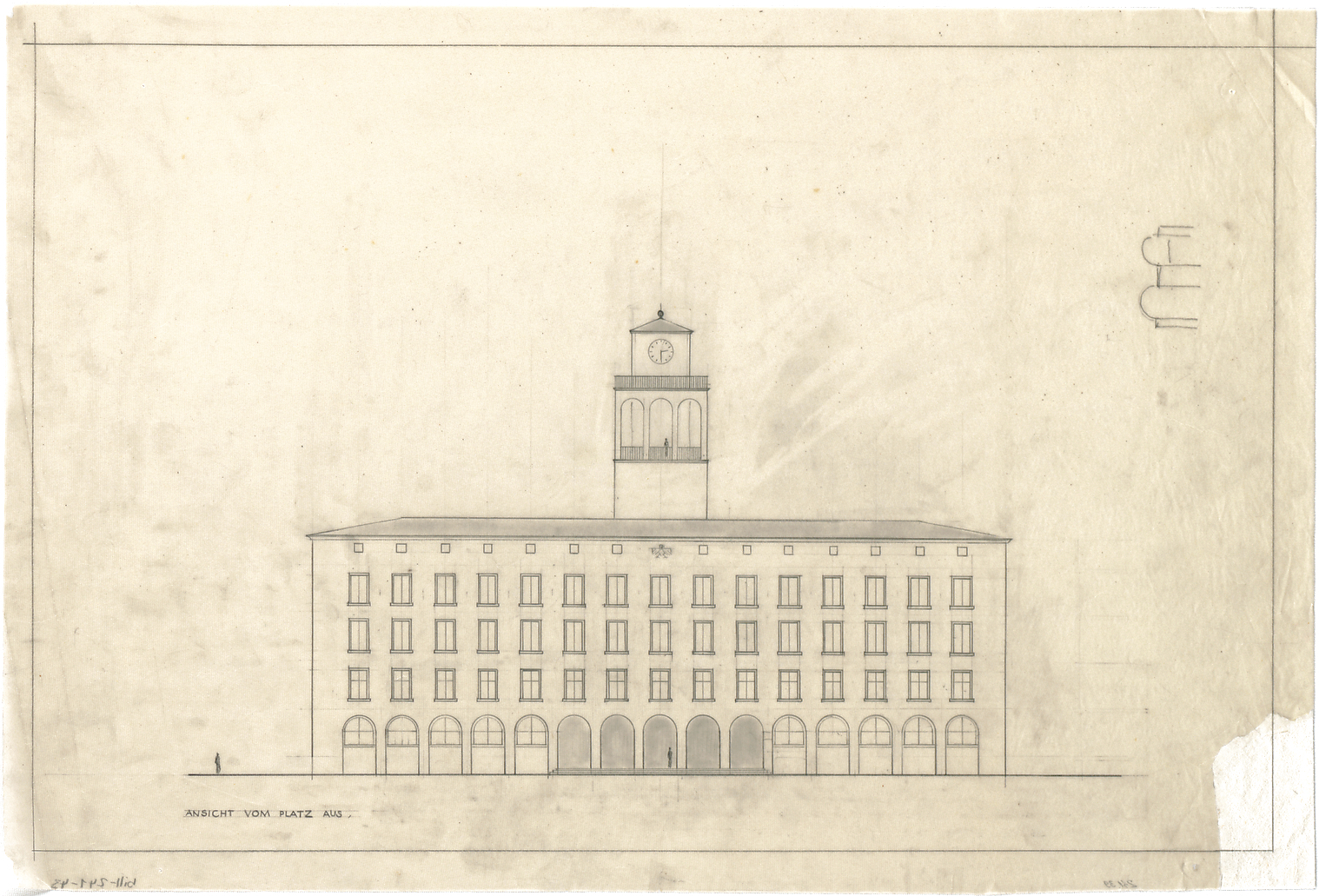- Ansicht vom Platz aus; unten rechts: Ecke ausgerissen