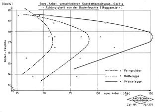 - Spez. Arbeit verschiedener Saatbettbereitungs-Geräte in Abhängigkeit von einer Bodenfeuchte (Roggenstein)