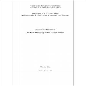 Ein Verfahren zur Berechnung der Bewegung von beliebig geformten Festkörpern in strömenden Flüssigkeiten wird vorgestellt. Dabei kommen ein Punktmodell mit Lagrange'scher Wechselwirkung und ein Volumenmodell auf der Basis von Impulskräften zur Anwendung. Die Rechenmodelle werden angewandt auf die Simulation von Fischdurchgängen durch eine Kaplan-Halbspiral-Turbine auf der Basis einer numerisch ermittelten Strömungslösung. Sowohl die Strömung als auch die Schwimmbahnen werden hinsichtlich der Gefährdung von Fischen beim Durchgang untersucht, woraus zwei alternative Vorschläge zur Verbesserung von Turbinen abgeleitet werden.