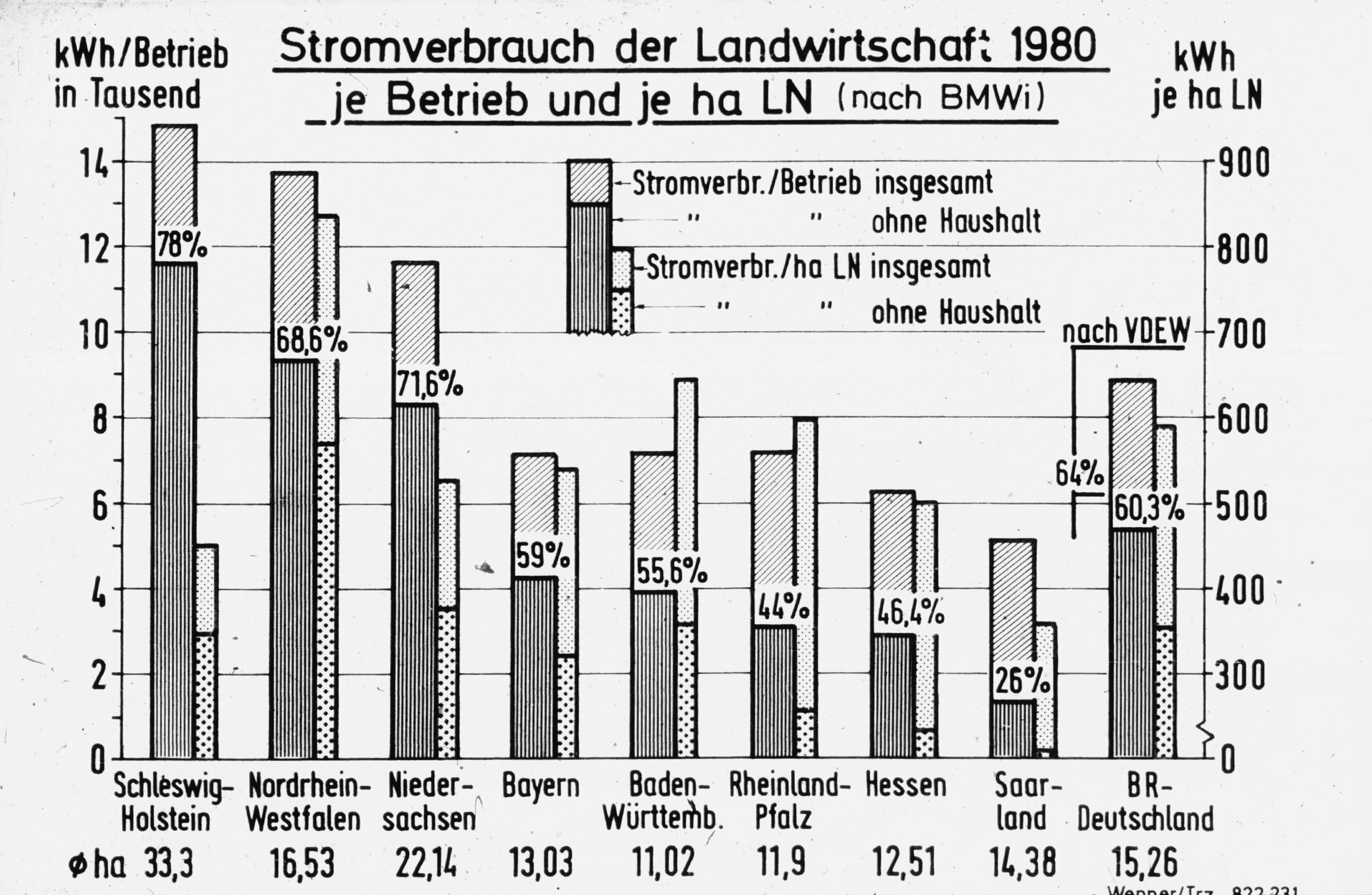 - Stromverbrauch der Landwirtschaft 1980 je Betrieb und je ha LN (nach BMWi)