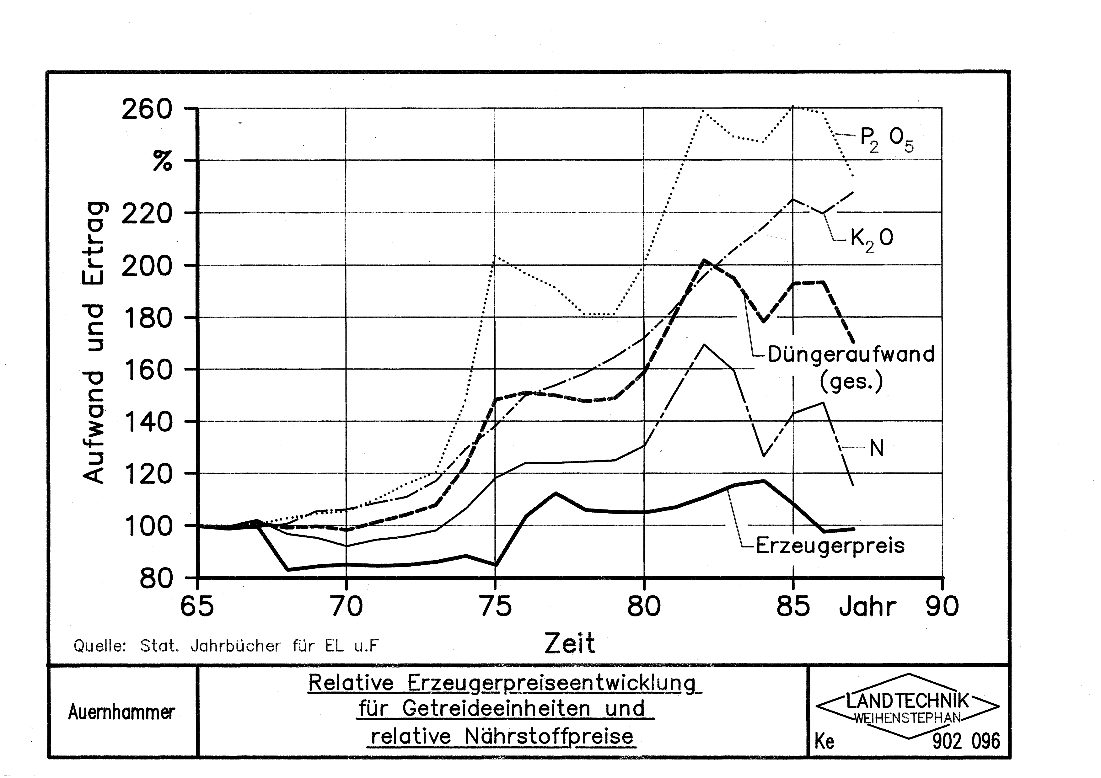 - Relative Erzeugerpreisentwicklung für Getreideeinheiten und relative Nährstoffpreise