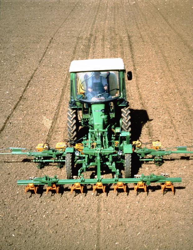 Single-seed; Single seed drill; Sugar beet; Tool carrier tractor; Mid-mounting; Band spraying