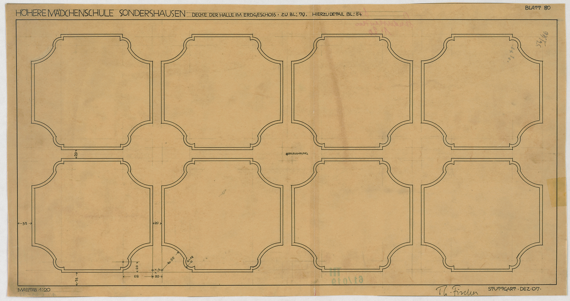 - oben rechts: Blatt 80; "... Zu Bl: 79. Hierzu Detail Bl: 84"