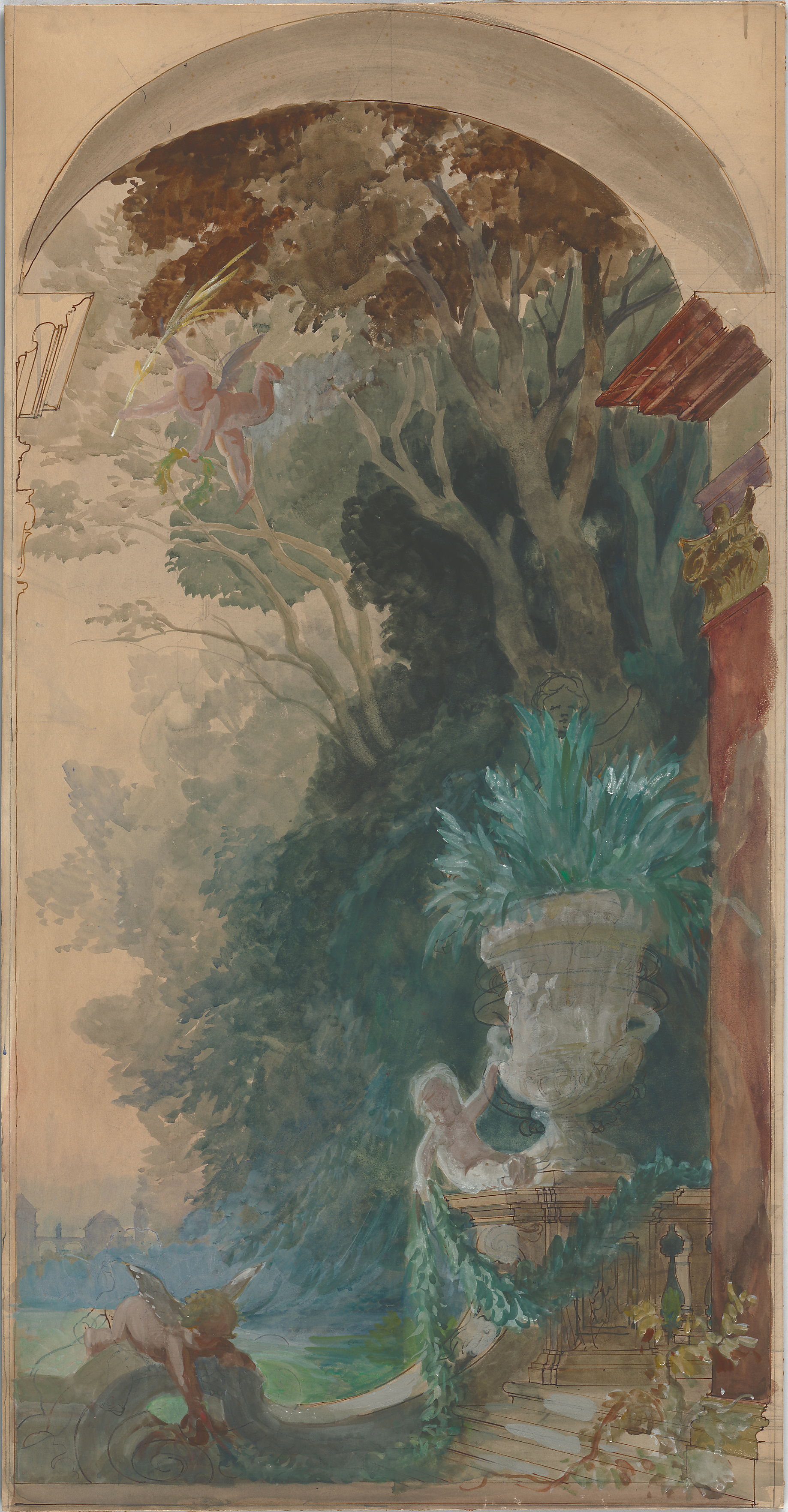 - Treppenaufgang mit Vase u. Putten (Perspektive)